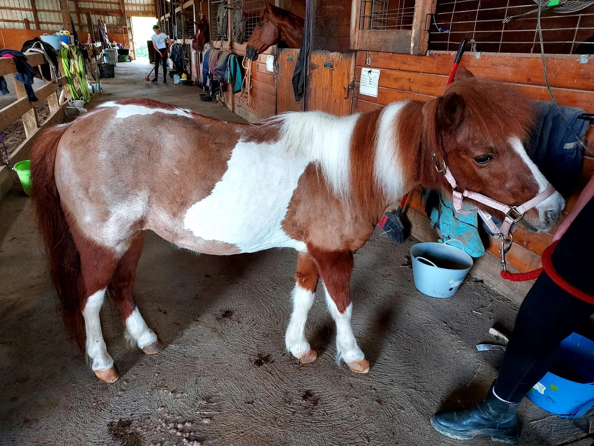 Lucy hasn’t done much work in the past few years, which is fine with her because she has developed a condition called “cushings” which is, unfortunately, common in horses and ponies. The condition causes Lucy some foot pain, and it also causes excessive hair growth and sweating… But we here at Pony Tails are well prepared to deal with her condition and help her to be in as little pain as possible. She is currently on medication for the condition and gets her feet trimmed in a special way to keep her comfortable.