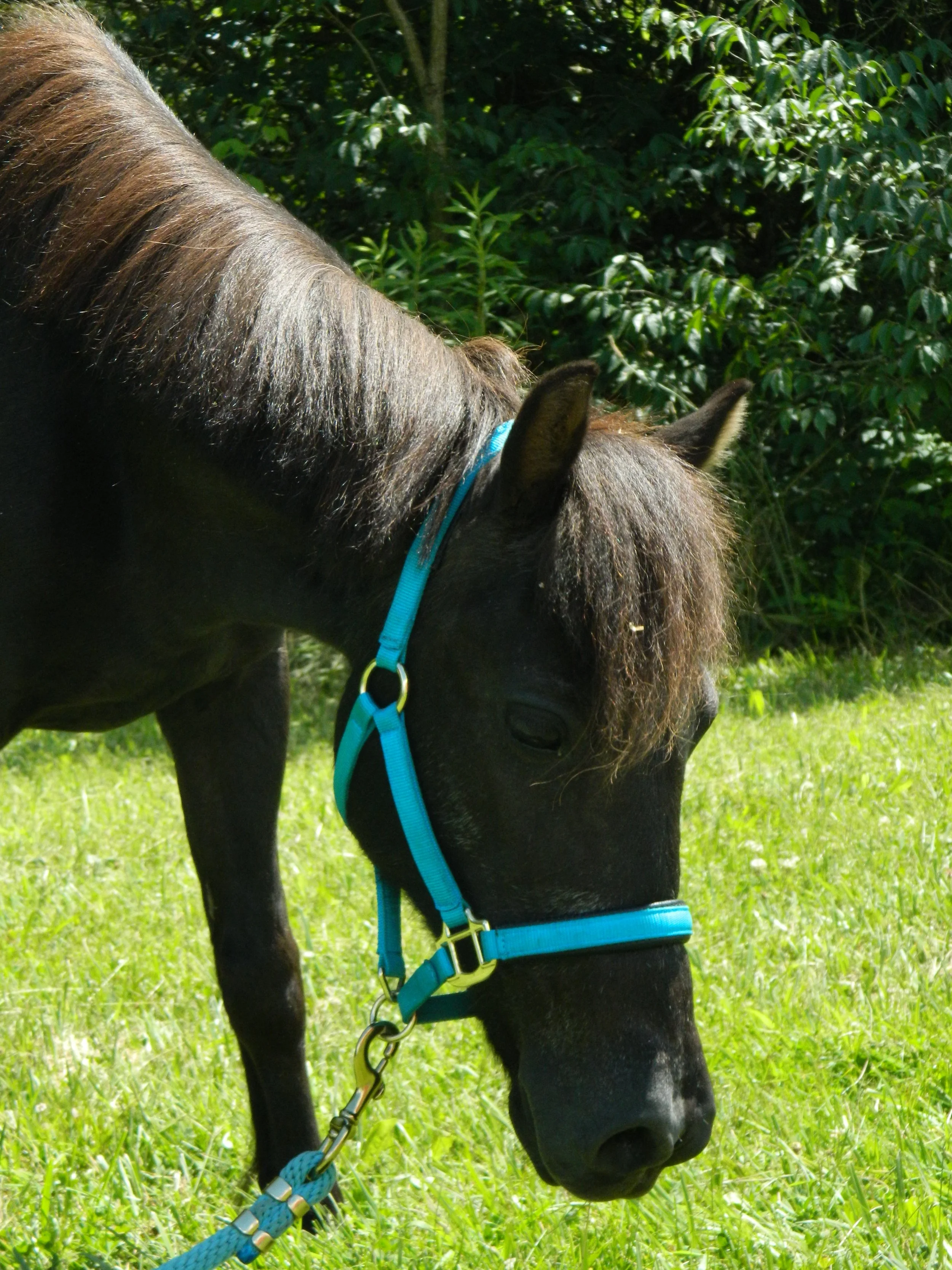 Scooter has a history as a riding and driving pony, and even though he is an old man, he can still do some light work. Mostly he will be used to teach people how to lunge and properly lead a horse or pony as he is a perfect gentleman, but he also still enjoys driving on occasion!